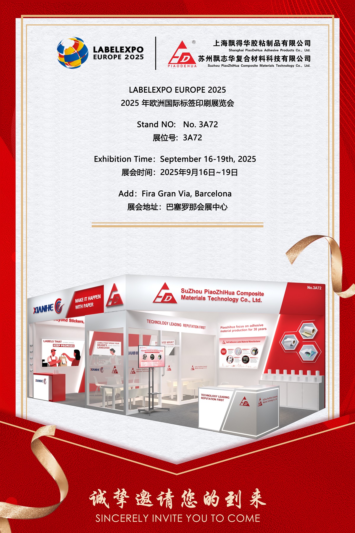 SuZhou PiaoZhiHua Composite Materials Technology Co., Ltd. est fière d'annoncer sa participation à Labelexpo Europe 2025, le principal salon international de l'impression d'étiquettes et d'emballages, qui se tiendra du 16 au 19 septembre 2025 à la Fira Gran Via de Barcelone, en Espagne. En tant que fabricant de confiance de matériaux d'étiquettes auto-adhésives hautes performances avec plus de trois décennies d'expérience dans l'industrie, Piaozhihua présentera son portefeuille de produits innovants au stand. N° 3A72 . L'exposition présentera des solutions adhésives avancées adaptées à diverses applications dans les secteurs des biens de consommation, de la logistique et de l'industrie.